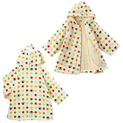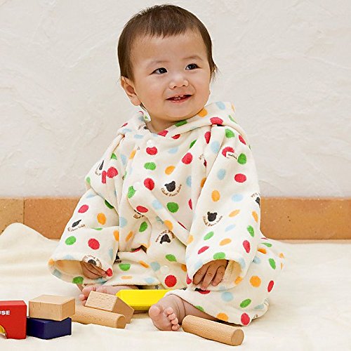 発売以来 大人気! キュートなベビーバスローブです。カラフルな 水玉の総柄パイル地は とってもふわふわ。生まれたての赤ちゃんから 2才くらいまでのお子様に