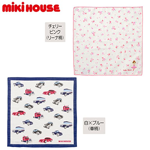 MIKIHOUSE(ミキハウス)リーナ&車 ガーゼハンカチ ---,白×ブルー
