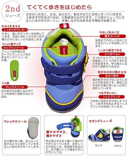 カラフルな色使いがとってもキュートな、スポーティーラインのセカンドシューズです☆ 甲ベルトの面ファスナーで調節して留められるので、甲高のお子様にもオススメ◎ 付け根のプラスチックのバックルが、大きく開いて戻らない仕様なので履きやすいですよ。 ゴム製のお顔マークが可愛いアクセントになっています。 またカップインソールがあることで、適度なクッション性とフィット感が生まれます。 取り外して洗うことも出来ますので、清潔感も保てますよ。 ポリエステルメッシュの素材感で、本格的なスポーティテイストを楽しめます☆ 機能性、デザイン性ともに充実したシューズは、走ったり飛んだり、 しっかりとした歩行ができるようになった足元をサポートするのにピッタリです! ※面ファスナーとは、マジックテープのことです。(「マジックテープ」は(株)クラレの登録商標です。) ●セカンドシューズ仕様 ●フレックスソール ●2Eラスト設計 ●しっかりカウンター ●カップインソール