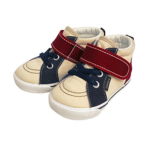 ハイカットでカッコイイ♪ キャンバス素材のシンプルなデザインのセカンドシューズです★ かかとにはBくんのポイント刺繍つき。 ゴム底には、ラインが入ってカッコイイですよ♪ 甲の紐部分はゴム仕様で伸縮して履かせやすく、甲ベルトは面ファスナーで調節して留められるので、甲高のお子様にも便利です。 内側は肌触りのよいパイル素材で、ベビーちゃんのあんよを優しく包みます♪ 機能性、デザイン性ともに充実したシューズは、走ったり飛んだり、しっかりとした歩行ができるようになった足元をサポートするのにピッタリです。 ※面ファスナーとは、マジックテープのことです。(「マジックテープ」は(株)クラレの登録商標です。) フレックスソール 2Eラスト設計 しっかりカウンター [素材]キャンバス [品質](皮革部分)合成皮革 (底材の種類)ゴム底 [生産国]中国