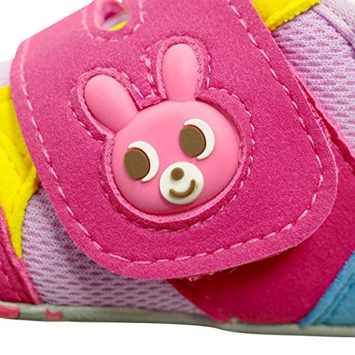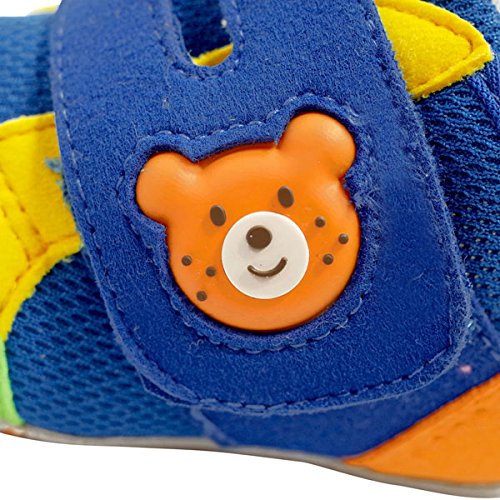 カラフルな色使いがとってもキュートな、スポーティーラインのファーストシューズです☆ よちよちからあんよをしだした赤ちゃんの動きは、次第に活発になっていきます。 でも、まだまだ歩行は不安定。 このころの赤ちゃんには、正しい歩行をしっかりサポートするシューズが必要です。 付け根のプラスチックのバックルが、大きく開いて戻らない仕様なので履きやすい♪ ゴム製のお顔マークが可愛いアクセントになっています。 ポリエステルメッシュの素材感で、ベビーちゃんでも本格的なスポーティテイストを楽しめますよ☆ 赤ちゃんの成長は早いもの。 3ヶ月程度を目安にこまめに足のサイズを測ることを心がけ、 常に最適なサイズの靴を選んであげてくださいね。 可愛いシューズで初めてのあんよも楽しく出来そうですね♪ ご出産のお祝いとしても喜ばれますよ◎ ※面ファスナーとは、マジックテープのことです。(「マジックテープ」は(株)クラレの登録商標です。) ●ファーストシューズ仕様 ●フレックスソール ●2Eラスト設計 ●しっかりカウンター 品質:(甲皮の使用材)合成皮革 (底材の種類)合成底 生産国:中国 ☆こちらの商品には保管箱がついています。