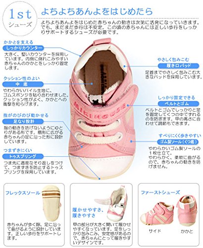 BBBくまちゃんがワンポイントのファーストシューズです★ やわらかなキャンバス素材でとってもオシャレ!! スポーティー感のあるキュートな仕上がりです。 つま先が少しあがっているので、歩き始めの赤ちゃんも歩きやすく、ファーストシューズとして、たっちやあんよの練習にお使いいただけます。 小さな赤ちゃんのあんよを優しく包むベビーシューズです。 面ファスナーで甲ベルトが開いて、履かせやすくなっています。 靴紐部分はゴム仕様で伸縮するので、甲高の赤ちゃんの足にもフィットします。 底が全面ラバーなので、室内だけでなく、お外歩きにも使っていただけます。 ご自宅用はもちろん、ご出産のお祝いにもおすすめのシューズです☆ ※面ファスナーとは、マジックテープのことです。(「マジックテープ」は(株)クラレの登録商標です。) ●フレックスソール ●しっかりカウンター ●2Eラスト設計 [品質](皮革部分)合成皮革(底材の種類)ゴム底 [生産国]日本