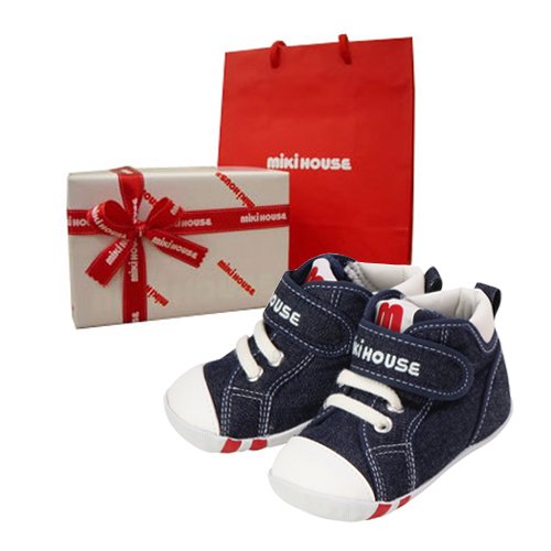 [ミキハウス] MIKIHOUSE mロゴ ファーストベビーシューズ 10-9373-971 12.5cm,インディゴブルー(リボンラッピング包装済み)