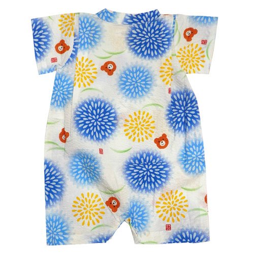 MIKIHOUSE HOTBISCUITS(ミキハウスホットビスケッツ)ビーンズくん 花火柄甚平オール M(70-80cm),黄(04)