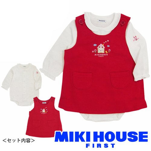 (ミキハウス)ミキハウスファースト ジャンパースカートセット (44-1803-671) 赤(02)
