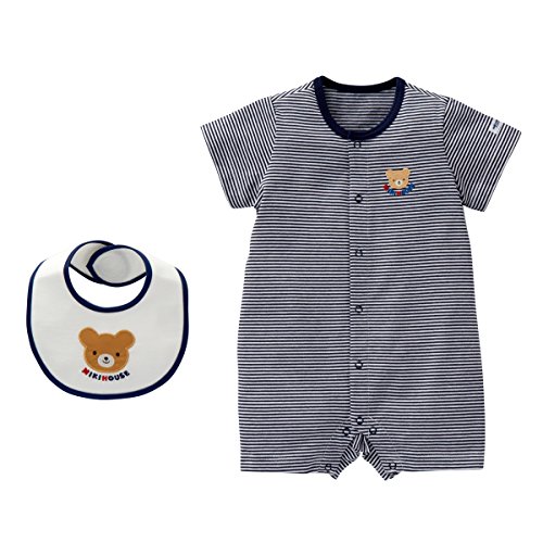 ミキハウス(ベビー)ボーダーショートオール&スタイ(よだれかけ)セット(44-1302-567) 80cm 紺(03)