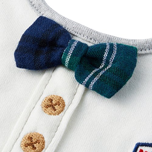 スタイにはチェックの蝶ネクタイとリボンが付いて