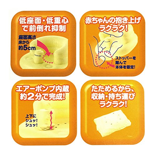 一人用の幼児用イスです。赤ちゃんの足がエアーポンプをはさむように左右から出ている状態でご使用ください。