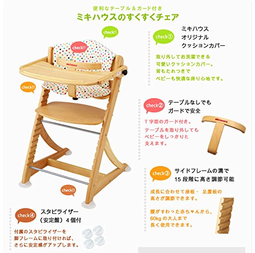 MIKIHOUSE FIRST(ミキハウスファースト)カラフルドット クッション付き 長く使える 木製すくすくベビーハイチェア (ベビーチェア) ---,----