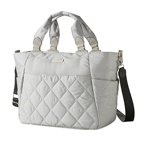 オムツ替えシートとインナーバッグが付いたナイロンキルトバッグです。