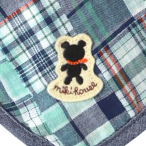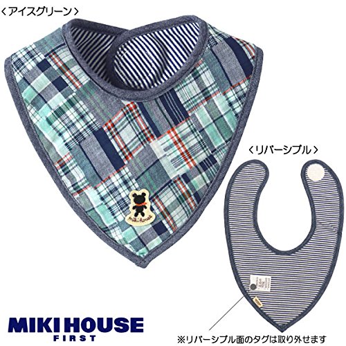 MIKIHOUSE FIRST(ミキハウスファースト)パッチワーク風×ボーダー リバーシブルスタイ(よだれかけ) ---,アイスグリーン(67)