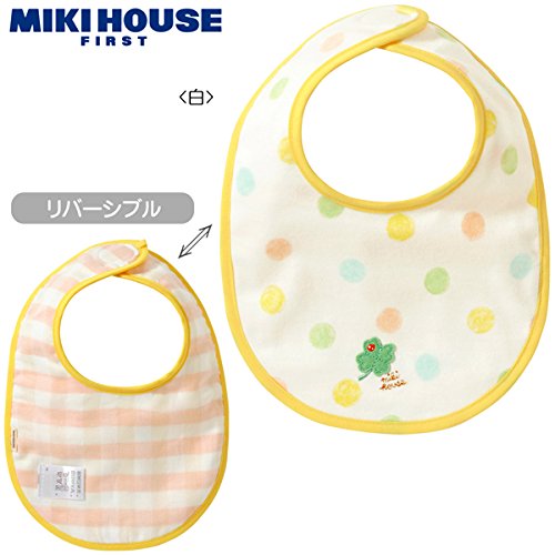 MIKIHOUSE FIRST(ミキハウスファースト)クローバーとてんとう虫の水玉柄リバーシブルスタイ(よだれかけ) ---,白