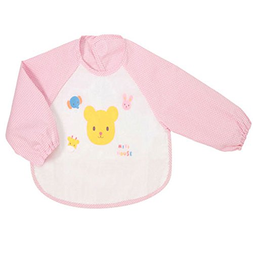 MIKIHOUSE(ミキハウスベビー)くまちゃん*うさちゃんの袖つきエプロン -,ピンク