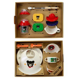 ■商品内容:テーブルウェアセット×1個/ランチスタイ・ライスボウル(直径:10.3×4.9cm)・スープマグ(直径:8.5×5.1cm)・ランチプレート(直径:23.1×2.4cm)・マグセット・ファーストプレート(14.6×12×3.9cm)・スプーン・フォーク・フィーディングスプーン・すり棒・果汁しぼり器・おろし器・すり鉢×各1、フードコンテナー(9×7×4.5cm)×2
