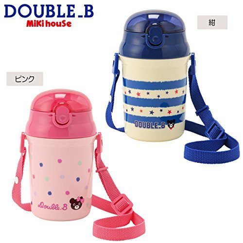mikihouse Double_B(ミキハウスダブルB)のボーダー&ドット柄 ストローホッパー 水筒(容量:340ml) ---,ピンク(08)