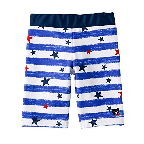 - 爽やかなボーダーと星柄の男子用6分丈水着です。