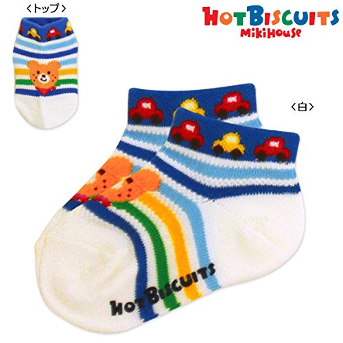MIKIHOUSE HOTBISCUITS(ミキハウスホットビスケッツ)ゴム口キュート ビーンズくんボーダーローカットソックス 11-13cm,白(01)