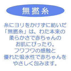 ふんわりやわらかな無撚糸素材を使用したミトンです☆ 撚りをかけずに紡いだ糸(無撚糸)を使っているのでふわふわのやわらかさ! お洗濯を繰り返しても優れた吸水性とソフトな風合いが続きます。 繊維の長い綿を使用しているので、毛羽抜けが少ないのも特徴です。 ミトンは、可愛いだけではなく、赤ちゃんがお顔をひっかいたり、おしゃぶりで手が荒れてしまうのを防いでくれる実用的なアイテム。 秋冬はもちろん、夏は冷房による冷えを防止するために役立ちます。 マシュマロのようにふわふわで優しく包み込むミトン! 無撚糸素材のアイテムと一緒にギフトにおすすめです。 ◎無撚糸とは… 無撚糸とは、繊維に撚り(より)をかけずに特殊な方法で作られた糸のこと。無撚糸を使った生地は、撚った糸を使った通常の生地に比べて、驚くほどふんわり、やわらか。 吸収性に優れ、お洗濯しても硬くなりにくく、やわらかさが持続します。また、厳選した、綿を使用しているので毛羽落ちも少なく、自然な光沢感があります。 生まれたての赤ちゃんの肌にも一番ストレスのない自然の素材です。