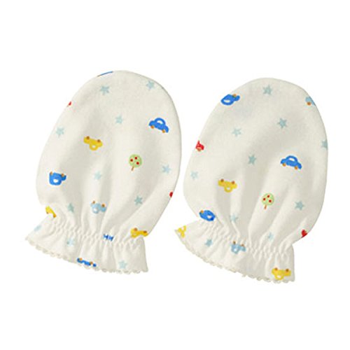 くるまとお花の柄が可愛いコットン100%のやわらかミトンです。 ミトンは、可愛いだけではなく、 赤ちゃんがお顔をひっかいたり、おしゃぶりで手が荒れてしまうのを防いでくれる実用的なアイテム。 秋冬はもちろん、夏は冷房による冷えを防止するために役立ちます。 お揃いの帽子や肌着と一緒に、生まれてきた記念に赤ちゃんにプレゼントしてあげたいですね。 ●天竺 ~さらっと爽やか~ 春から夏向きの薄手で平編み地。通気性に優れ、サラッと涼しい軽い肌触りが特徴。 生後間もない赤ちゃんをウイルスや細菌から守る高機能な肌着です。 『赤ちゃんをウイルスや細菌から守る! 安心安全加工のピュアベール』 ●ポイント1 優れた抗ウイルス性・抗菌性 素材の表面に付着するウイルスや細菌を99%以上感染できない状態にし、その働きを抑えます ●ポイント2 優れた洗濯耐久性 素材の風合いを生かしながら、繰り返し50回洗濯しても高い効果が持続します ●ポイント3 高い安全性 口の中の消毒や洗浄に使用される消毒薬がベースなので、赤ちゃんの肌に触れても安全 赤ちゃんのまわりにはウイルスや細菌の危険がいっぱい! 赤ちゃんは抵抗力がなくて感染に弱いので、着るだけで抗菌・抗ウイルス効果が期待できる 安心安全加工「ピュアベール」を施した肌着ならママも安心ですね。 肌触りがよく、保温性と発汗性に優れ、刺激の少ない肌着で守ってあげたいですね。 【生産国】日本 【品質】綿100%