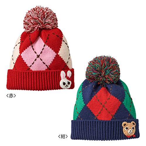 MIKIHOUSE(ミキハウス)アーガイル模様 ぼん天付きニットフード フリー(46-52cm),紺