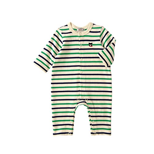 ダブルB(mikihouse) Everyday Double_B ボーダーカバーオール 80cm 紺×グリーン(53)