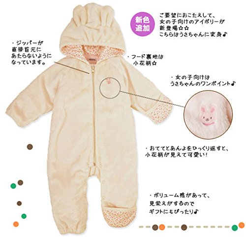 MIKIHOUSE FIRST(ミキハウスファースト) BBB お耳つきあったかなりきりカバーオール(マイクロファー) フリー(60-80cm),白(ウサギ)(01)