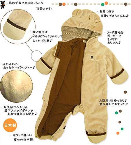 とってもあったか~いマイクロファーのクマちゃん・うさちゃんミミつき防寒カバーオールです★ 寒い時期のベビーのお出かけはお洋服に悩みますよね。 これさえあれば、お外でもあったか♪マイクロファーはやわらかくって手触り抜群!! モコモコしないので抱っこもしやすく、あんよが動かせるので赤ちゃんもご機嫌です。 フードの裏側はボーダーで、脱いでもさりげなくオシャレ。寒いお外では、袖口と裾がクルンとひっくり反せてカバーできるようになっています。 寒い風もシャットアウト!!できて、ぬっくぬく◎人気の防寒ウェア★ ぜひGETしてベビーを可愛いクマちゃん・うさちゃんに変身させてあげてくださいね♪