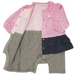 鮮やかな小花柄がキュートなカバーオールです♪ 小花柄のウェアとフリルスカートにスパッツをコーディネートしたようなデザイン☆☆ 1枚でセパレート気分を味わえるとってもお得で可愛いカバーオールです。 前スナップボタンで全開するので、お着替えやオムツ替えにも便利◎ 股下は6分丈の長さなので、ベビーソックスやレッグウォーマーとの組み合わせも抜群です。 女の子ならでは可愛いカバーオール!春ギフトにもオススメです♪ ●股下6分丈 品質:綿100%,(リブ部分)綿74%、ポリエステル26% 生産国:日本