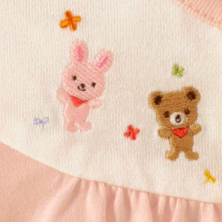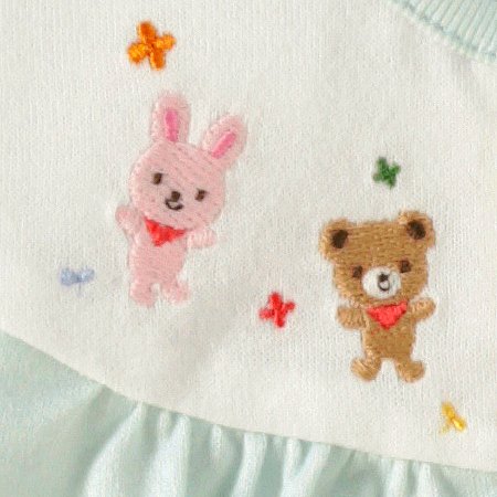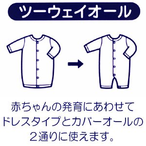 キュートなフードがついたツーウェイオールです☆やや薄手のやわらかな天竺素材で、オールシーズン着用できるので、出産お祝いにもオススメ◎胸元のヨーク部分には、どうぶつ達の刺繍が丁寧に施されていて可愛い仕上がりです。同じ素材の帽子がついて、とっても便利!ツーウェイオールは、成長に合わせて2種類の使い方ができる基本アイテムです。新生児の頃は、おむつ替えに便利なドレスタイプで、足の動きが活発になってきたら、股下のホックの付け替えで、足を分けてカバーオールタイプとして使えます。肌触りのよいベビーアイテムは、出産ギフトにオススメです。フードつき●素材:40/2天竺●品質:綿100%(リブ部分)綿73%、ポリエステル27%●生産国:日本