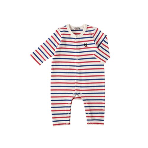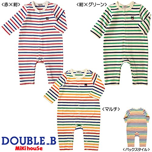 ダブルB(mikihouse)Everyday Double_B 厚手ボーダーカバーオール 70cm, 赤×紺(42)