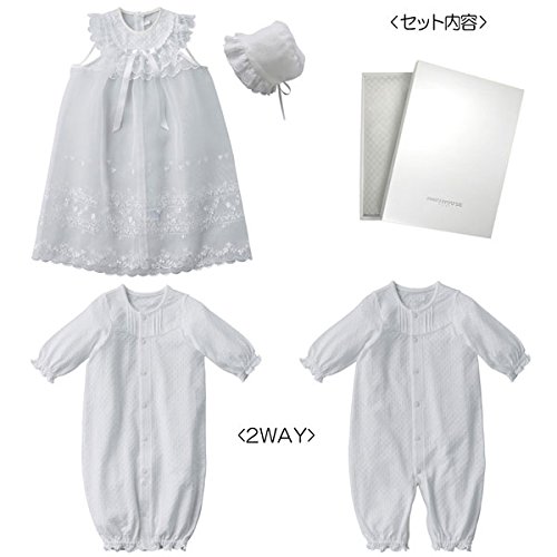 美しい刺繍が丁寧に施されたオーガンジーコートとツーウェイオール、フードの3点セレモニーセットです☆