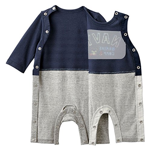 mikihouse Double_B(ミキハウスダブルB)マリンボーダー カバーオール 80cm,紺