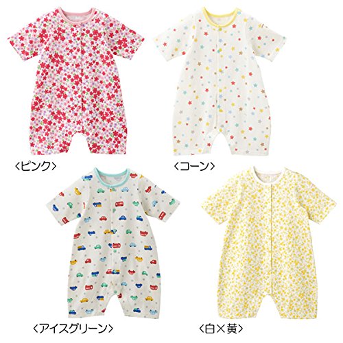 MIKIHOUSE FIRST(ミキハウスファースト)鮮やかな星&お花柄のプレオール(50cm-60cm)(カバーオール) 50-60cm,白×黄