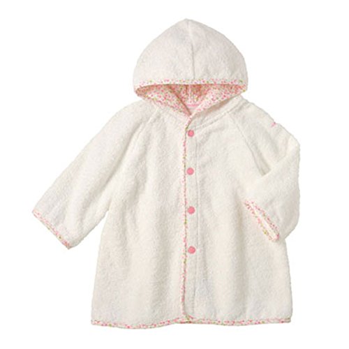 オレンジピンク色の小花柄がとってもキュートなバスローブです♪ シンプルな白地に、フード裏と縁取りが小花柄の清潔感ただようバスローブです。 新生児から3才頃まで幅広くお使いいただけます。 赤ちゃんをお風呂上りにすっぽりと包んであげたり、プールや海水浴で体が冷えないようサッと羽織ったりなど便利に使えるアイテムです。 UVカット効果も備わって、お子様の肌を紫外線から守ります。 厚みのあるしっかりとしたパイル生地。優しい肌ざわりで、ベビーちゃんも快適に包まれますね。 『自分ではあまり買わないけれど、もらったらとっても嬉しい!』と評判のバスローブ☆ロングセラーアイテムです。 ギフトにもオススメです。 ●紫外線遮蔽率(UVカット)90%以上 寸法:(cm)身幅:38 着丈:48 袖丈:35 ※表示寸法は目安となっております。実際の商品の寸法とは若干差がある場合がございます。ご了承くださいませ。 [品質]綿100% [生産国]日本