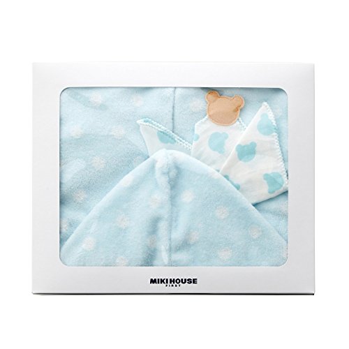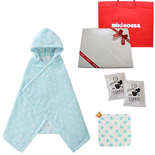 ミキハウス ドットバスポンチョ&ガーゼハンカチセット ブルー(リボンラッピング包装済み)+オリジナルデカフェギフトセット