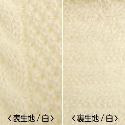 表地のニットは、特殊な染色方法により編み糸がふっくらと空気を多く含むため、保温性が高く、やわらかな風合いが特長です。