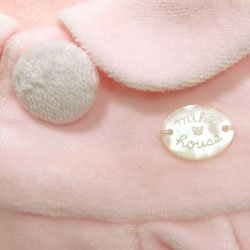 とっても上品で清楚感あふれるベロア素材のベストです♪ フロントの大きな丸いボタンは飾りボタン!着脱はスナップボタンで簡単!! 胸元のロゴ入りの透明なボタンがワンポイントで可愛いですね♪ ま~るいお衿が、優しい雰囲気をさらにアップ☆☆ 少し寒いなぁという時には、ささっと羽織って頂けます。 ベストは体温調節には最適なので、重宝しますよ♪ 体温調節GOODでママも安心☆ オシャレで着心地GOOD!赤ちゃんもゴキゲン☆ おでかけが楽しくなりますね☆☆ [素材](表地)ベロア (裏地)40/2天竺 [品質](表地)綿80%、ポリエステル20%(裏地)綿100% [生産国]日本