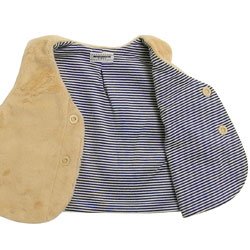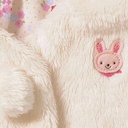 なめらかな毛並みが高級感あふれるベストです♪♪ 通気性も兼ね備えた保温性の高いマイクロファー素材のベストで軽くてあったか◎ 気軽に着れてとってもオシャレ!! くまちゃんワンポイントのベージュは、裏地がボーダー柄☆ うさちゃんワンポイントの白とピンクの裏地は、女の子らしいキュートな小花柄♪ どちらも天竺素材で、肌触りも抜群です。 ふわふわ梵天のボタンがとっても可愛いですね。 着脱はホックで簡単です。 あたたかさも兼ね備えた上品なベストは、普段着に重ねるだけでとってもオシャレですよ! ●〈白・ピンク〉:(前あき) 右上前あわせ 【品質】ポリエステル100%(裏地)綿100% 【生産国】日本