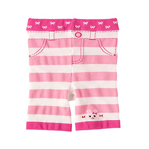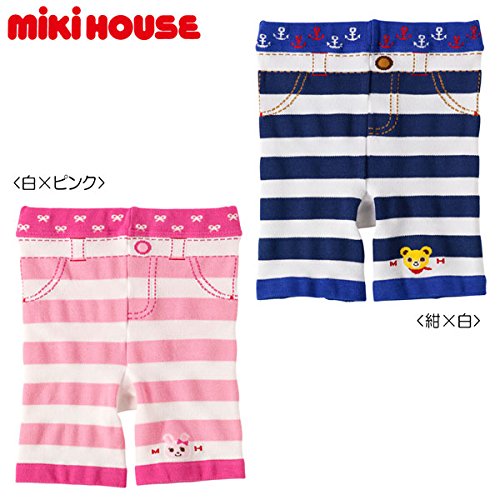 MIKIHOUSE(ミキハウス)イカリマーク&リボン プッチー&うさこボーダー5分丈スパッツ (80cm・90cm・100cm) 90cm,白×ピンク