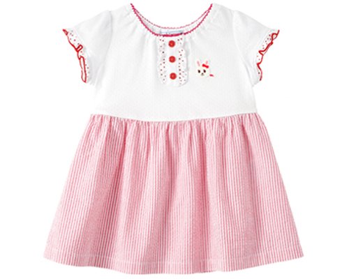 ピンクのストライプスカートがとってもキュートなワンピースです♪