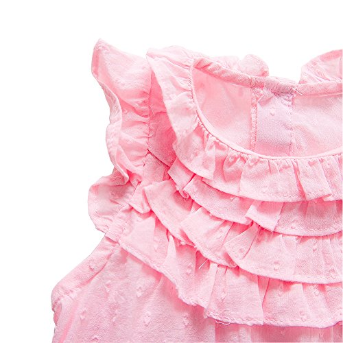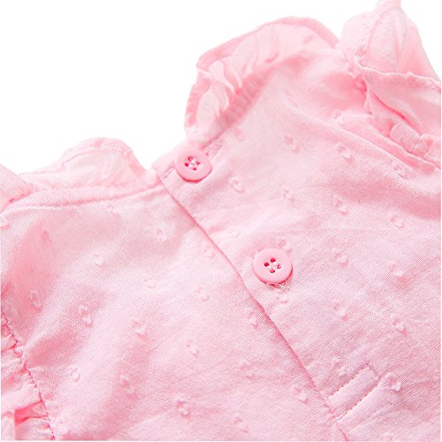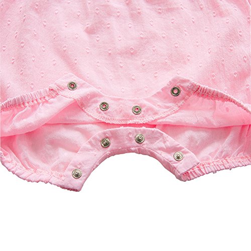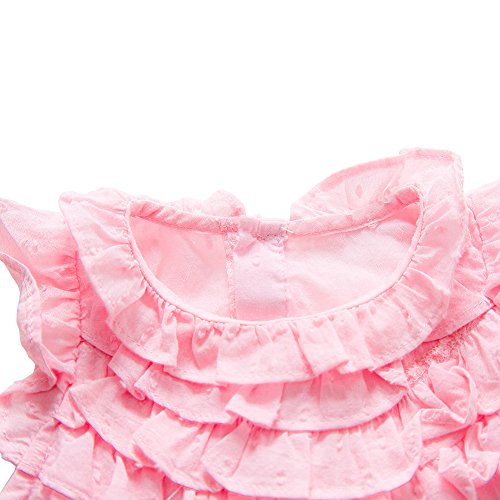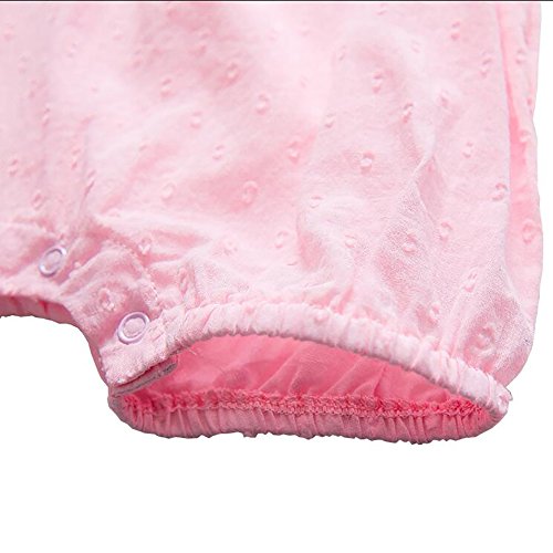 mikistory ベビー服 新生児 女児 夏 出産祝い 女の子 子供服 綿100% ジャガードコットンボディースーツ幼児 夏の花袖歩くと登るかわいいプリンセスシャツラウンドネックレースボディスーツ Pink 90cm