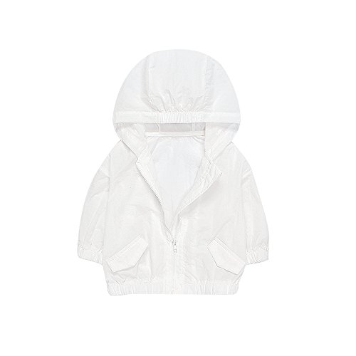 mikistory キッズ UVカット 長袖ラッシュガード アウター 羽織 夏 男の子女の子 軽量薄手 ホワイト 90cm
