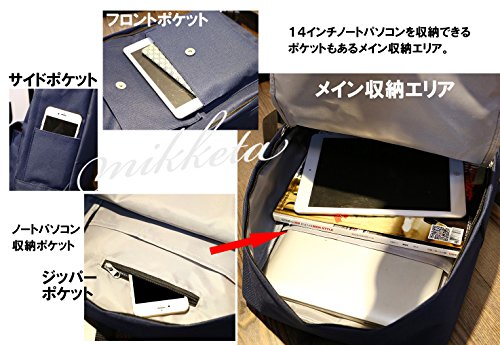 優れた収納:14インチノートパソコンの収納も可能。「フロントポケット」は開閉しやすく頻繁に出し入れが必要なアイテムの収納に便利です。「メイン収納エリア」には14インチノートパソコンの収納も可能です(収納ポケットあり)。
