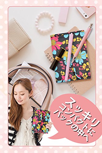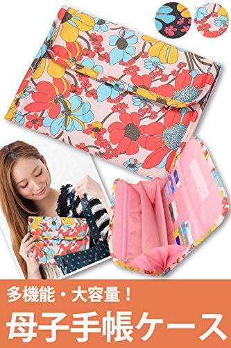 mikketa マルチケース 母子手帳 ケース カバー ジャバラ 花柄 ブラック