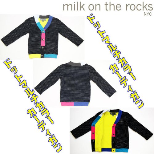 ミルクオンザロックス(milk on the rocks)ドットマルチカラーカーディガン(ベビーサイズ)(キッズサイズ) 4y ブラック