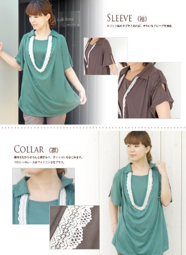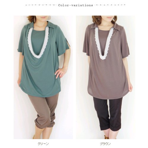 マタニティ兼用レース使いドレープチュニック 母乳育児用授乳服 ミルフェルム BIZ M ブラウン