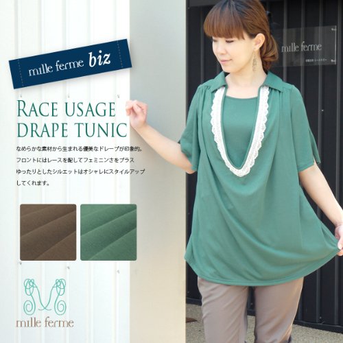 デキる印象のドレープトップスにレースでひとさじの甘さをプラス授乳服 チュニックミルフェルム BIZレディース チュニック