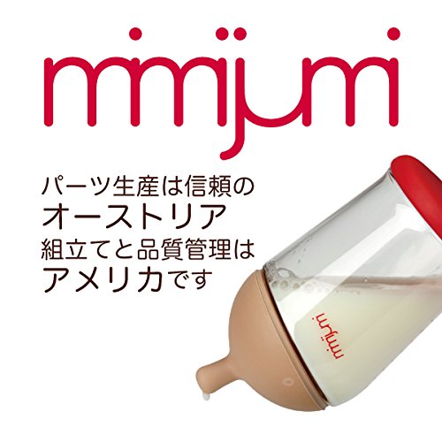 世界各国で雑誌掲載多数、米国では企業のヘルスケア部門やベビー雑誌などで受賞◆現在世界30か国以上で愛用されている話題のほ乳びんが日本初上陸!◆二人の精神科医と一人の工業デザイナーによって2008年アメリカで設立されたmimijumi社は新しい子育て世代に 向けたスタイリッシュでナチュラルなほ乳びんを開発しました◆mimijumi はママのおっぱいに限りなく近く作られているので、赤ちゃんはmimijumi に自然になじむことができます◆ママは安心していつでも母乳とほ乳びんによる授乳ができ、ミルクへの移行も簡単です◆仕事復帰を目指すママ、混合授乳したいママ、ナチュラルなほ乳びんをお探しのミルク派のママやパパにもお勧めの、素材にこだわった安心安全な母乳びんです◆信頼のおけるスイス製、ドイツ製の高品質な医療用素材を使用し、BPA、BPS、ラテックス、フタル酸エステルなどの人体に悪影響を及ぼす可能性のある物質を含まないので安心してご使用いただけます◆オーストリアでパーツを生産し、アメリカで組立と厳しい品質管理を行っています◆mimijumiは食洗機対応でお手入れも簡単です。※電子レンジはご使用になれません。