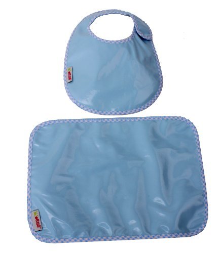 Great for keeping your child and table clean;Fully wipable Bib and Mat Set;Great As a Gift;Available in 5 colours;Your child will love them