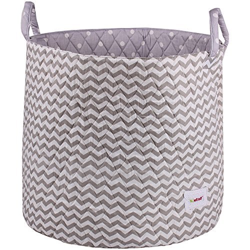 Minene Large Storage Basket with Grey Chevron - star storage baskets, round storage baskets, large fabric storage basket - great for toy storage, kids storage and as a laundry hamper by Minene